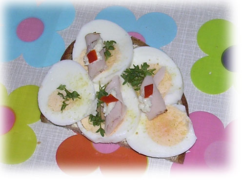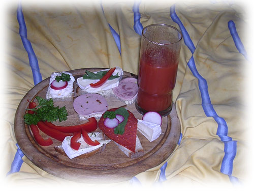 We sleep 'til the "Sendung mit der Maus ". And sometimes I try to make a really yummy brunch - but only when I feel like doing it ;-) Then I come with stuff like this, to enlarge please click on the thumbnails: